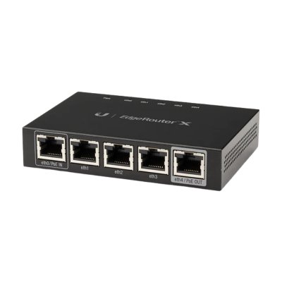 Ubiquiti EdgeRouter X (ER-X) là thiết bị định tuyến cân bằng tải cao cấp với các tính năng bảo mật, giám sát và quản lý mạng nâng cao của hãng Ubiquiti, Mỹ. Thiết bị cung cấp 5 cổng Gigabit Ethernet hiệu suất cao, cấu hình mạnh mẽ, khả năng chịu tải lớn lên tới 80 – 100 thiết bị kết nối đồng thời, có khả năng cộng gộp băng thông, hoạt động ổn định.